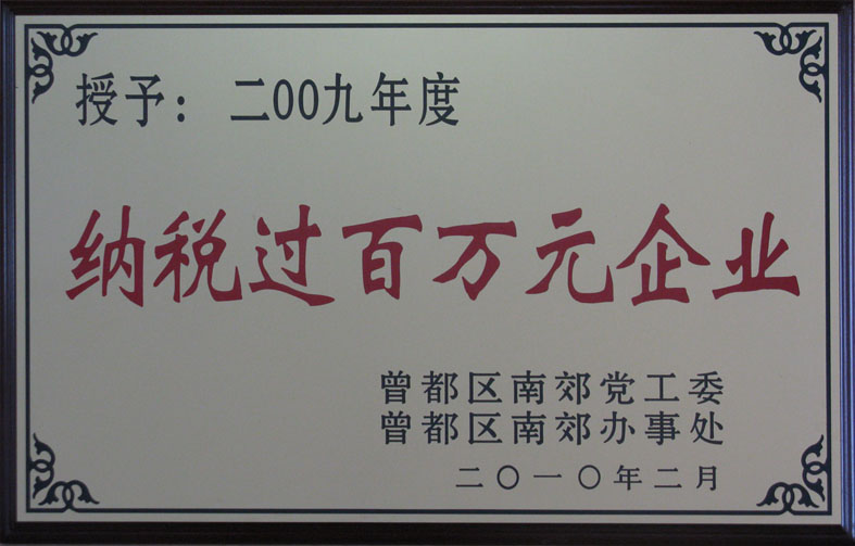 納稅過百萬元企業 曾都區2008年度外貿出口工作先進單位 2010十佳地稅納稅人