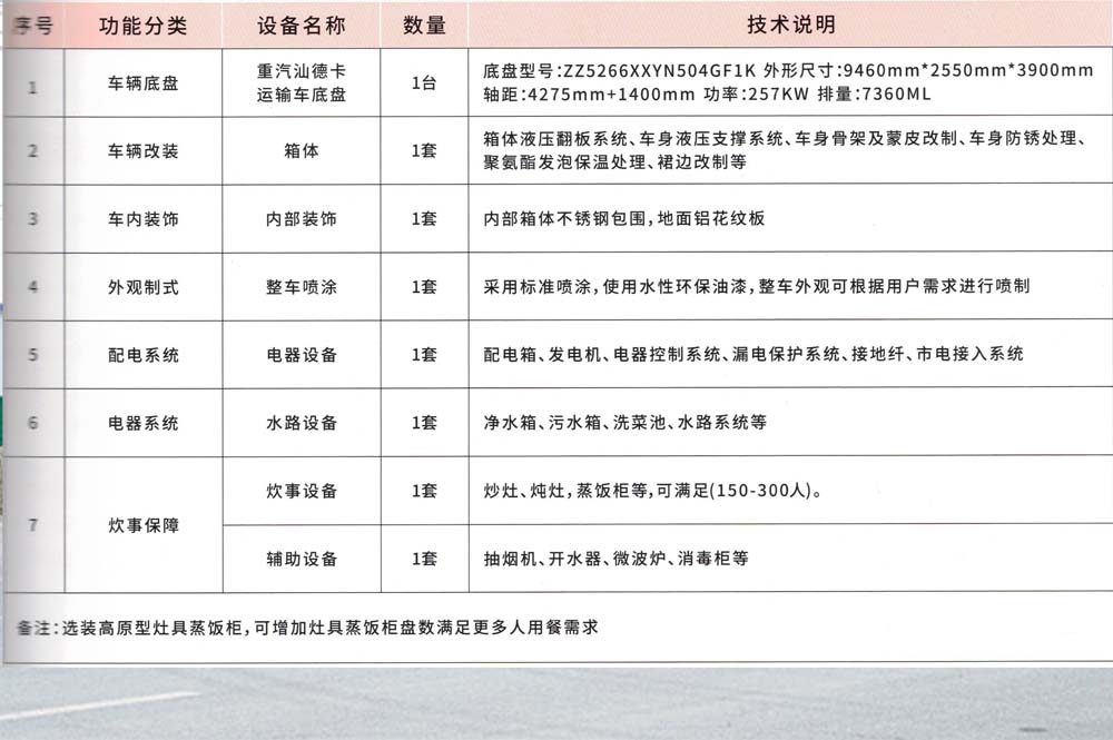 重汽汕德卡餐車飲食保障車(每小時可加工300人份飯菜)
