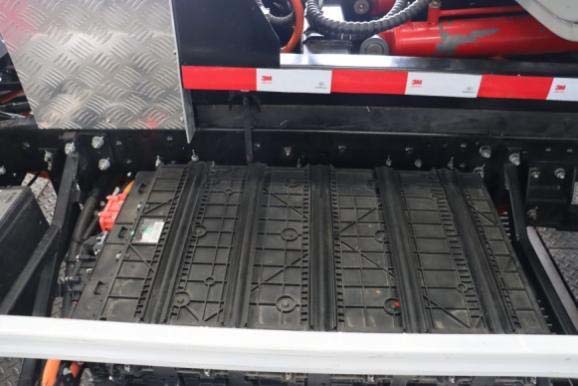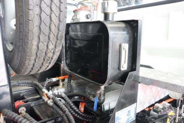 一、底盤配置: 采用東風(fēng)EQ1320GTZEVJ車身,配置玉柴TZ388XSSFE01發(fā)動機360馬力,國六排放標準,軸距1850+3550+1350(mm),整備質(zhì)量14.15噸,額定載質(zhì)量17.72噸,五擋變速箱,帶動力轉(zhuǎn)向,帶原廠空調(diào),隨底盤選裝電池護罩,輪輞,踏板;側(cè)面防護裝置材料為鋁合金,與底盤縱梁采用 焊接連接;后下部防護裝置材料為 Q235,與車架螺栓連接,截面尺寸:120×60mm,離地高 度為 445mm;動力蓄電池種類:磷酸鐵鋰蓄電池,生產(chǎn)企業(yè):寧德時代新能源科技股份有 限公司;驅(qū)動電機類型:永磁同步電機,驅(qū)動電機功率:360kW,生產(chǎn)企業(yè):陜西法士特齒輪 有限責(zé)任公司;ABS 型號:CM4XL-4S/4M;ABS 生產(chǎn)企業(yè):廣州瑞立科密汽車電子股份有限 公司;該車安裝具有衛(wèi)星定位功能的行駛記錄儀;專用功能及裝置該車上黃牌,城區(qū)道路請注意限行標識。