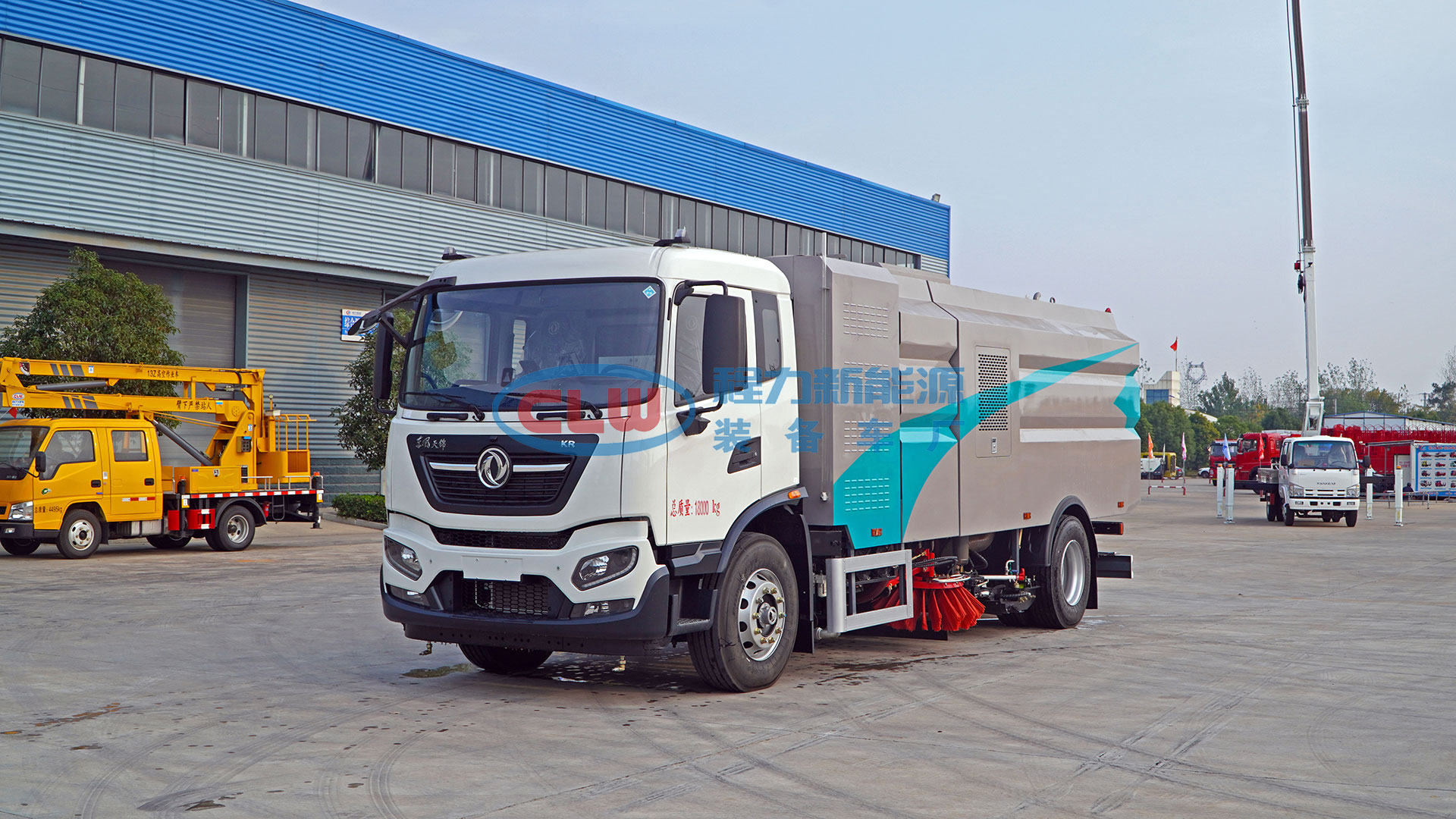 四、其他說明: 東風天錦純電動洗掃車是我公司自行設計開發、具有自主知識產權、國際領先技術水平的新一代路面、路沿清洗、清掃及噴霧降塵的專用設備。該款洗掃車結合了掃路車及高壓清洗車的功能特點,并解決了吸塵車無法在城市道路上清洗路沿的短板,在作業時利用掃刷將地面垃圾掃向車內側,路面的頑固附著物由高壓噴水桿噴出的水流沖起,再由吸盤吸入垃圾箱儲存.具有綠色環保、功能齊全、設計合理、能耗低、清洗范圍廣、使用壽命長等特點。