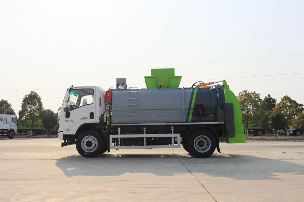四、其他說明: 由于餐廚垃圾車上裝結(jié)構(gòu)復(fù)雜,自質(zhì)量較大,降低餐廚垃圾車自質(zhì)量,提高其載荷 利用率,將降低車輛運(yùn)營成本。因此采用高強(qiáng)度材料,以降低上裝自質(zhì)量;擋泥板、裝飾件、蓋 板等輔助件采用密度較小的注塑件,采用集成化程度較高的零部件,以減少空間占用和自質(zhì)量, 同時(shí)有利于改善液壓系統(tǒng)的工作性能。專人試車;模擬各種復(fù)雜工作環(huán)境,所有壓縮發(fā)車前實(shí)物測試。