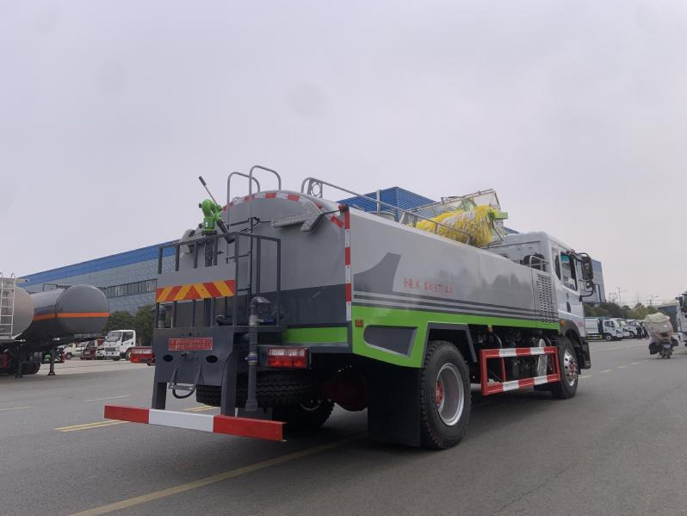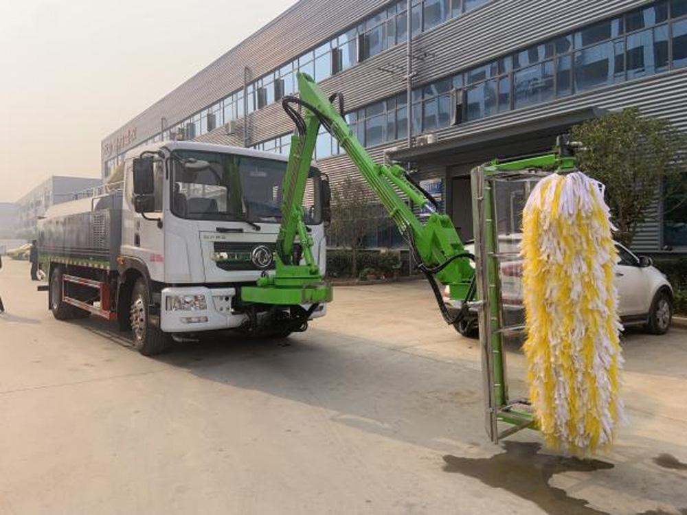 隧道清洗車由底盤,罐體、機(jī)械臂、水泵、噴嘴,清洗刷、一體完成工作。機(jī)械臂可359°旋轉(zhuǎn),所有的操作都在駕駛室完成。
