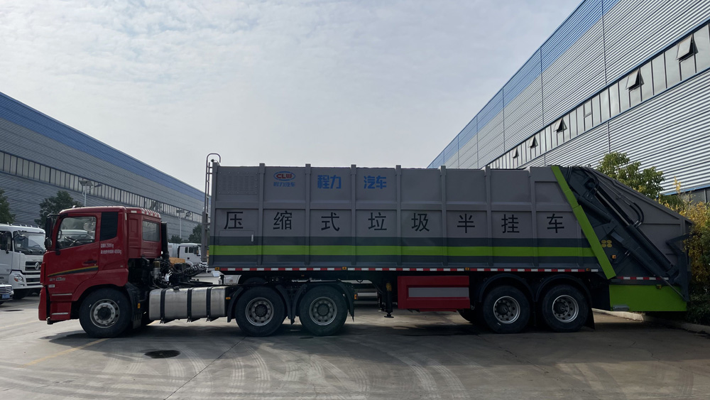 該車特點 半掛式設計使其車身較長,車廂容積一般可達 30-40 立方米甚至更大,能裝載大量垃圾,可有效減少運輸次數,提高垃圾清運效率,適合城市大型垃圾轉運站、大型社區或商業區等垃圾集中區域的垃圾清運。對于生活垃圾、建筑垃圾、工業垃圾等多種類型垃圾,只要在車輛設計承載范圍內,均可進行裝載運輸。較大的空間也便于收納體積較大的垃圾。