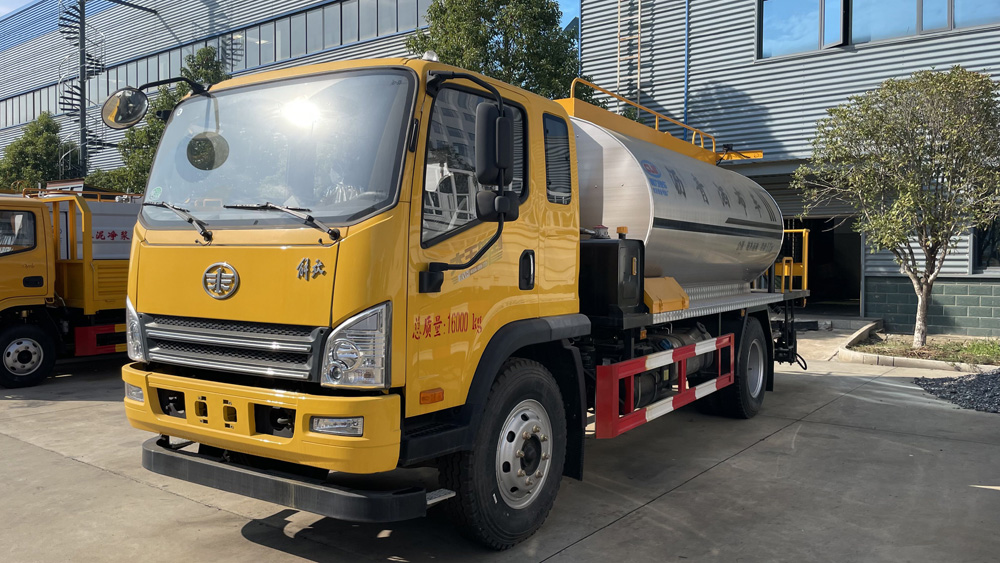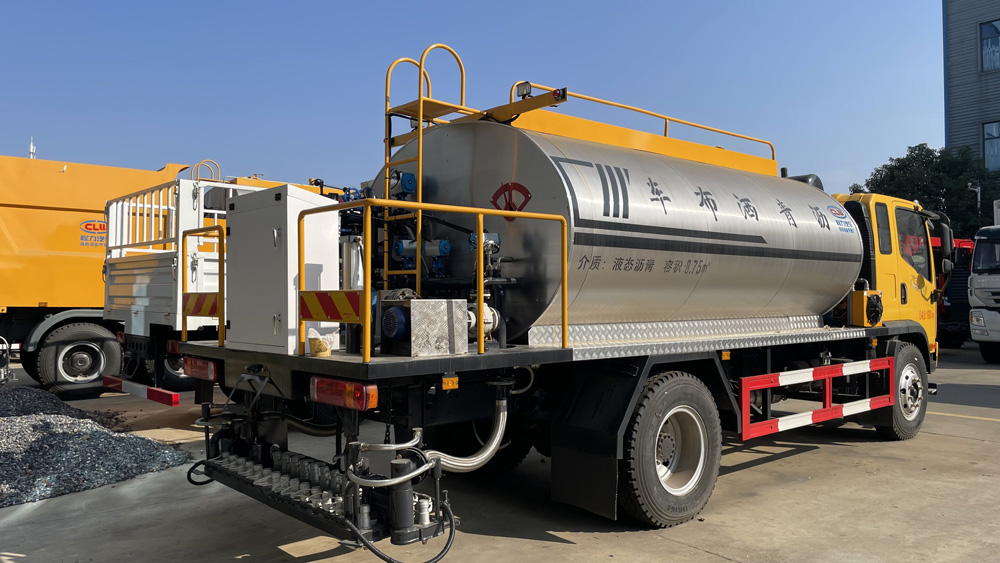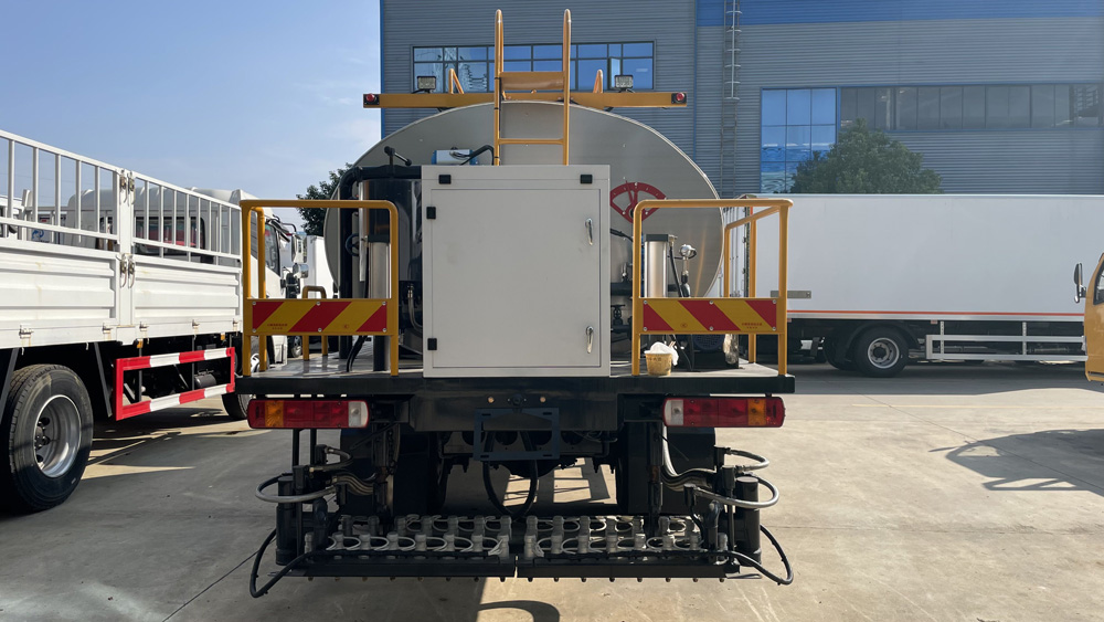 四、其他說明: 智能型瀝青灑布車是一種專業(yè)灑布乳化瀝青、稀釋瀝青、熱瀝青、高粘度改性等瀝青的半智能科技產(chǎn)品。用于修筑高等級公路瀝青路面 底層的透層油、防水層、粘結(jié)層的灑布。該灑布車由汽車底盤、瀝青罐體、瀝青泵送及噴灑系統(tǒng)、液壓系統(tǒng)、燃燒及導熱油加熱系統(tǒng)、控 制系統(tǒng)、氣動系統(tǒng)、操作平臺構(gòu)成。