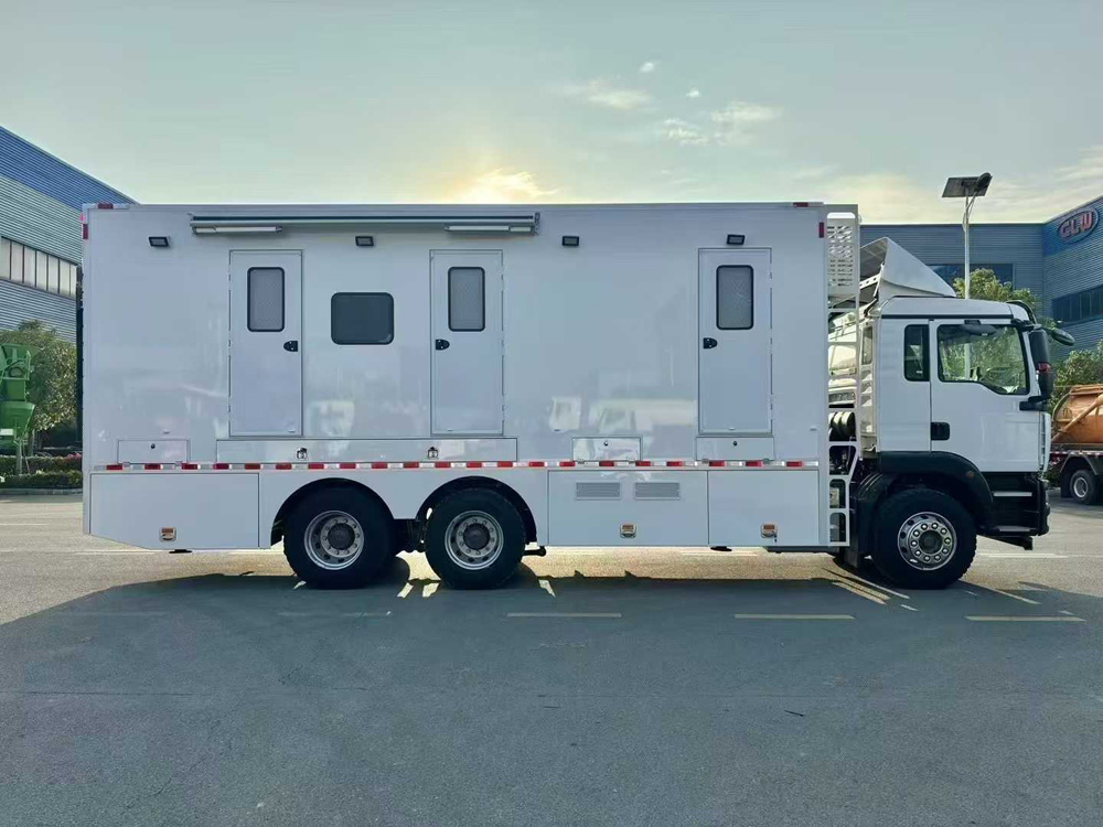 一、底盤配置: 采用重汽ZZ5266XXYN504GF1K車身,配置玉柴MC09.35-60發動機266/355馬力,國六排放標準,軸距3875+1400(mm),整備質量19.87噸,額定載質量0噸,五擋變速箱,帶動力轉向,帶原廠空調,該車上黃牌,城區道路請注意限行標識。