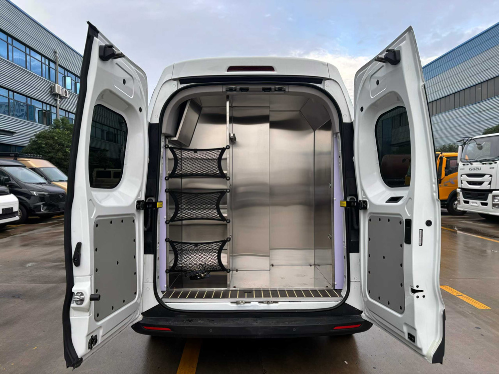 該車特點 該車配備器械存放柜,主要用于特種人員的運送; 選裝限速裝置,發動機ECU限速,限速100km/h,